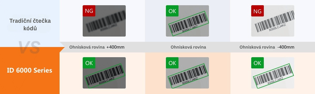 Řada ID6000 je postavena na vícejádrovém procesoru s podporou deep learningu. Díky speciálně optimalizovanému algoritmu a vysoké snímkové frekvenci při dekódování dokáže spolehlivě číst i nekvalitní kódy ve ztížených podmínkách, jako jsou znečištěné, poškozené nebo špatně vytištěné kódy.
