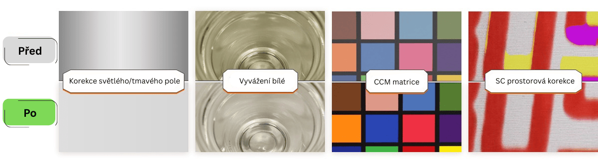 Řádkové kamery Hikrobot CL podporují různé ISP funkce: korekci plochého pole (FFC), Gamma, LUT, vyvážení bílé, CCM (Color Correction Matrix), SC (Shading Correction) atd., které uživatelům pomáhají získat obrazová data vyšší kvality.