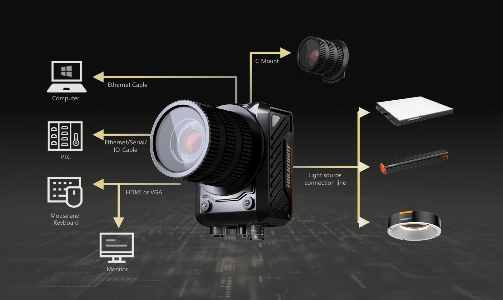 Smart kamera SC6000 si zachovává vysokou hardwarovou integraci a přitom podporuje kombinaci s různým příslušenstvím, jako jsou objektivy C-mount, externí zdroje světla a displeje. Tím se zvyšuje schopnost kamer reagovat na komplexní scény.